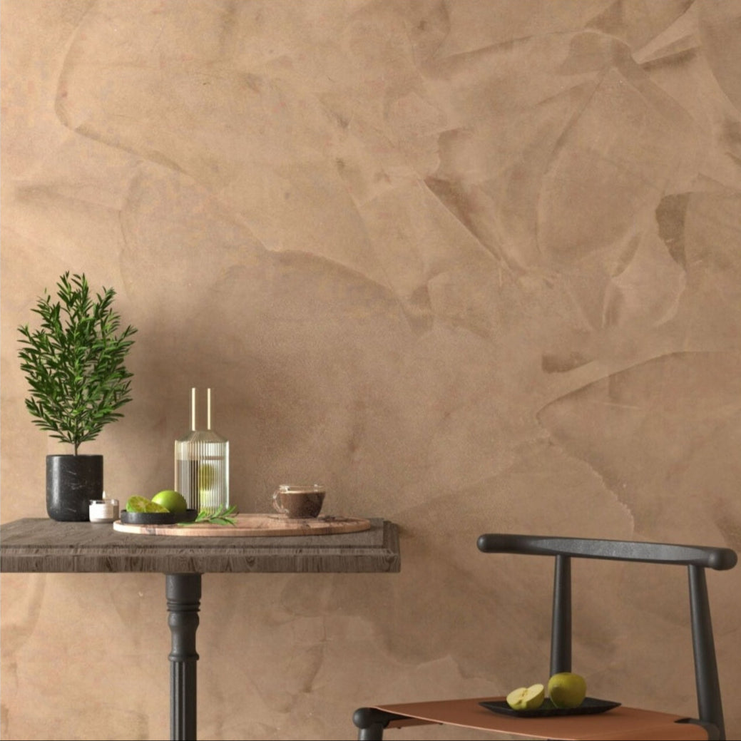 Tämä upea pinnoite luo kaunin tuloksen kun se levitetään yhteen kertään. Silloin jokainen lastan veto jättää silkkisen helmihohton ja näin syntyy elävännäköinen pinta. Mutta tämä materiaali mahdollistaa myös useiden kerrkoksien eri teknikaalla ja eri sävyillä levitystä tai sapluunan käyttöä, silloin vasta todellinen mestariteos syntyy.